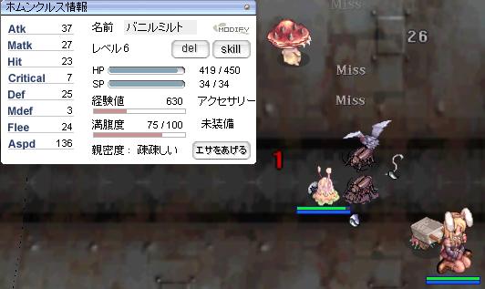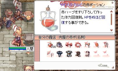 ダメが痛いので手作り赤ポ投げつつ狩り。現在Lv13まであがりました。