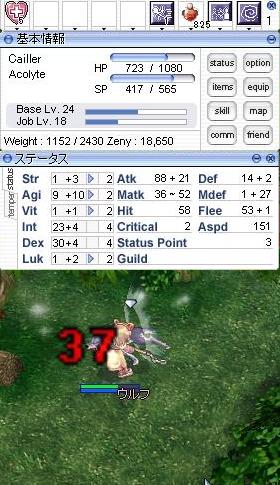 INT80で一応止めてAgiを振ってみたので、いつかレベル上がったら